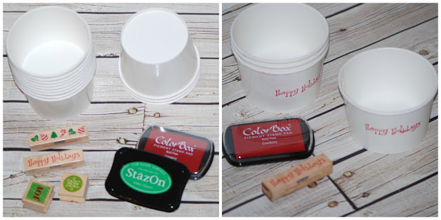 Rubber Stamp Ice Cream Bowls – use festive rubber stamps to decorate the ice cream bowls. Its a great way to customize plain white disposable dishes for any party.