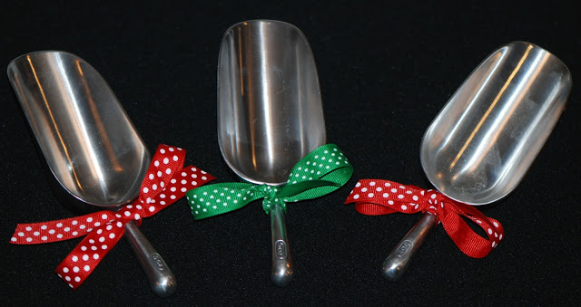 Tie ribbon around scoop handles – tie a festive ribbon around the handles of the scoops for extra color and pattern.